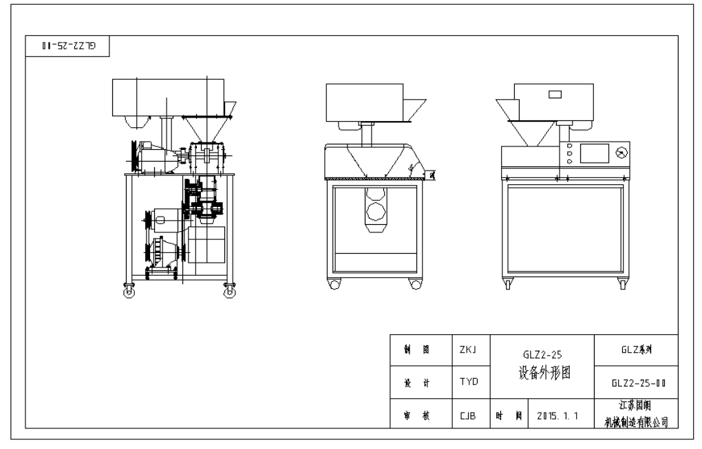 GLZ2-25户外幹法製粒设备,該设备適用於户外、中間實驗裝置和小型生產,隻需50-80克左右的幹粉,並得到所需要的块状,块状大小可調,能適用不同的要求,成物率高、自動化程度高、使用方便、通用性好等特點,可根據客戶需要在壓輪處增加水冷裝置。