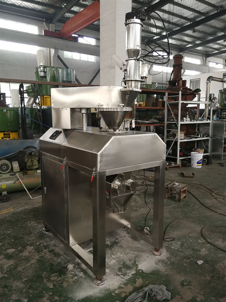 9297至尊品牌游戏官方网站生產用幹法製粒设备 幹法造粒设备該设备廣泛適用於大型製藥廠,食物廠,化工廠生產使用,需1350克左右的幹粉,並得到所需要的块状,块状大小可調,能適用不同的要求,成物率高、自動化程度高、使用方便、通用性好等特點,可根據客戶需要在壓輪處增加水冷裝置。