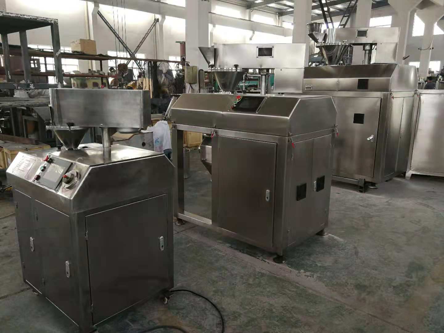 GLZ70 中試幹法製粒设备電设备部分采用PLC觸摸屏控製,液壓采用電動油泵,增加過篩、除塵裝置,自動化程度高。送料、壓片,製粒速度均可調節,壓力可調,成物細度可調,改進製粒轉籠,增加块状的成物率。本设备有送料、壓片、製粒、整粒、過篩、除塵等裝置置於一體。將粉體原材料直接製成滿足用戶要求的块状狀產物,無需任何中間體和添加劑,製粒後產物粒度均勻,堆積密度顯著增加,改善流動性,既控製了粉塵飛揚,又減少粉料浪費,便於貯存和運輸,可控製溶解度、孔隙率和比表麵積等。可直接用於壓片或充填膠囊。特別適用於傳統濕法製粒無法製粒的,濕熱條件下不穩定的藥物進行製粒。幹法製粒工藝可替代濕法製粒的流水線投入,節省人力、物力、財力,是節能環保的新型設備。本设备裝拆、清洗方便。