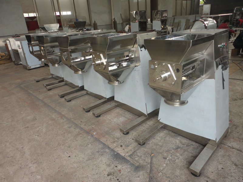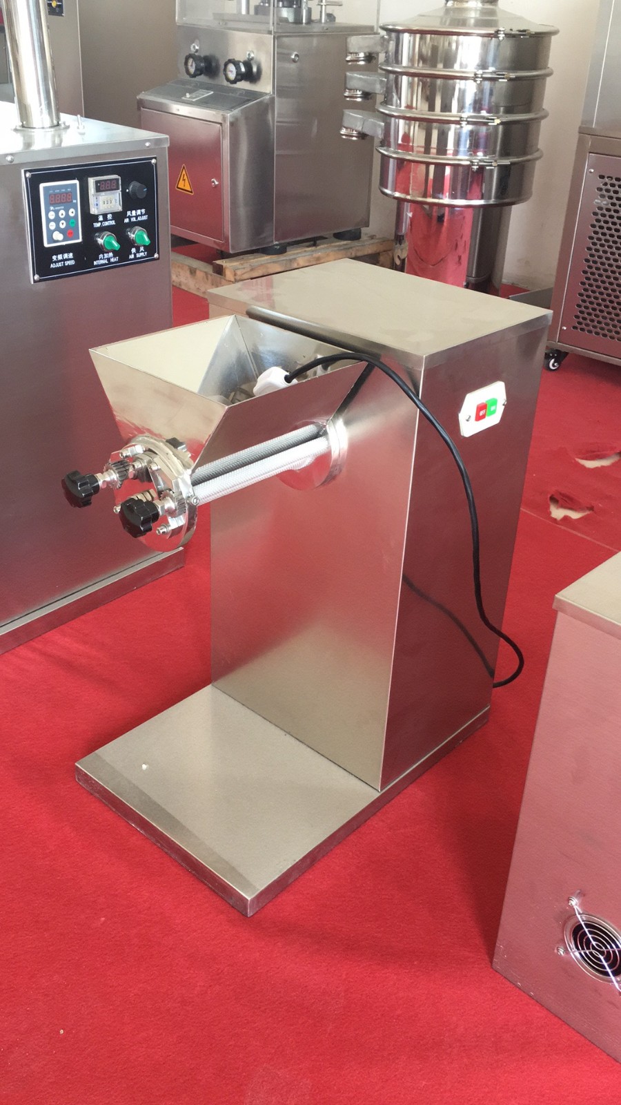 本设备是一種用旋轉筒的搖擺作用,通過篩網、可以將潮濕的粉末原料研成块状,亦可廣泛地用作粉碎已壓了塊子而成為現成的块状之用。