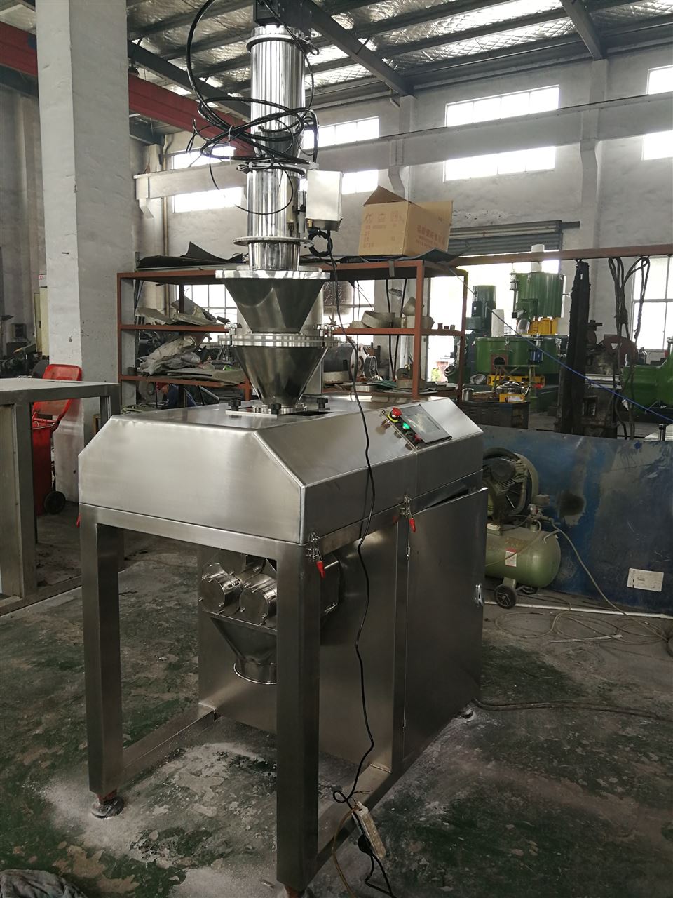 本设备電设备采用PLC觸摸屏控製,液壓采用電動油泵,增加過篩、除塵裝置,自動化程度高。送料、壓片,製粒速度均可調節,壓力可調,成物細度可調,改進製粒轉籠,增加块状的成物率。將粉體原材料直接製成滿足用戶要求的块状狀產物,無需任何中間體和添加劑,製粒後產物粒度均勻,堆積密度顯著增加,改善流動性,既控製了粉塵飛揚,又減少粉料浪費,便於貯存和運輸,可控製溶解度、孔隙率和比表麵積等。可直接用於壓片或充填膠囊。