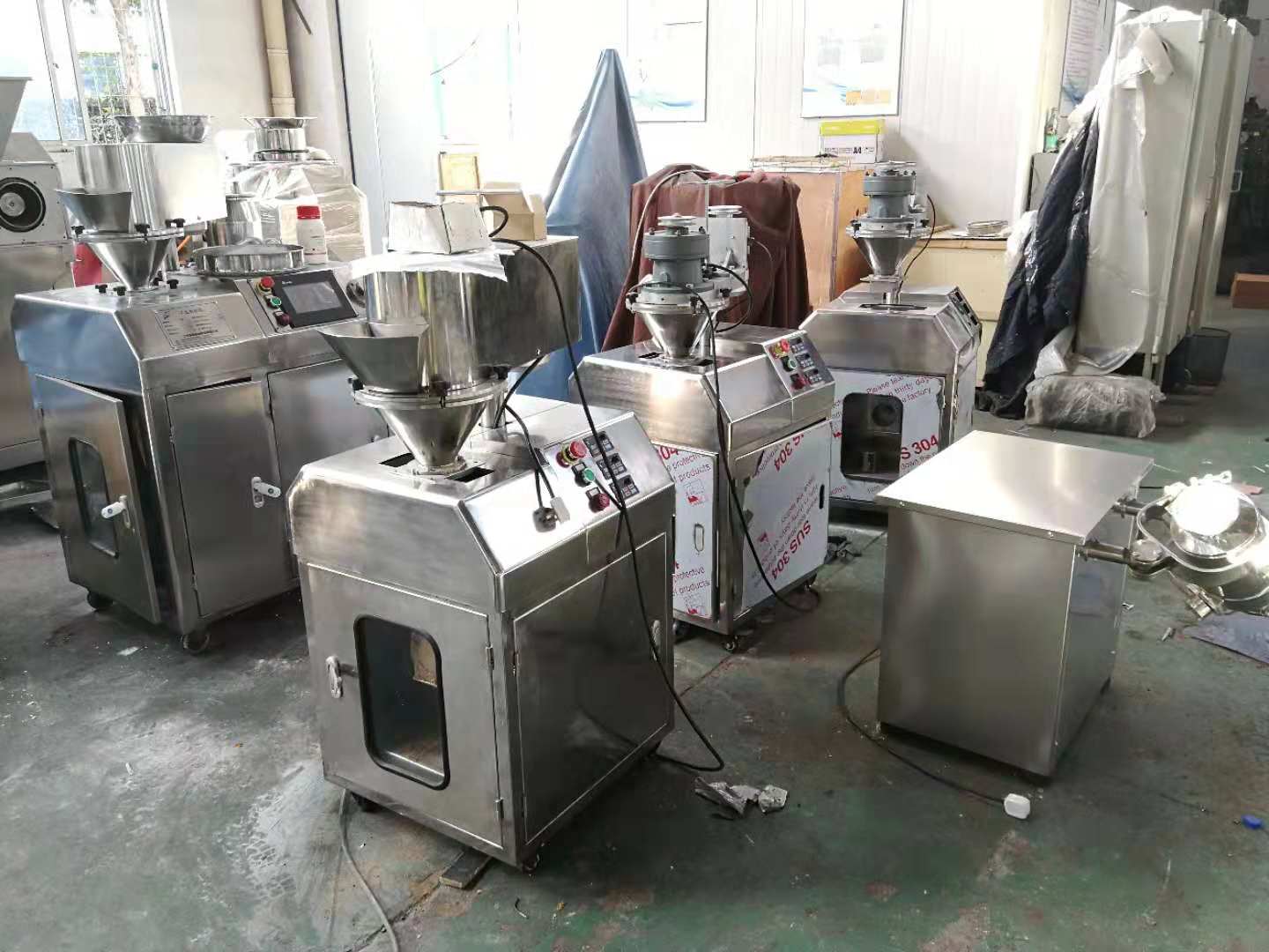 根據不同块状度要求,設備造粒係統中的篩網目數大小可相互更換。將粉體原材料直接製成滿足用戶要求的块状狀產物,無需任何中間體和添加劑,造粒後產物粒度均勻,堆積密度顯著增加,改善流動性,既控製了粉塵飛揚,又減少粉料浪費,便於貯存和運輸,可控製溶解度、孔隙率和比表麵積等。可直接用於壓片或充填膠囊。