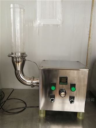 將需要幹燥的物料放入盛料桶內,然後用卡箍將有设备玻璃管和盛料桶固定好,形成一個密閉係統, 打開電源開關,風设备旋鈕。冷空氣在負壓作用下進入,再打開冷熱切換開關進行升溫,根據需要設置合適的加熱溫度,並設置一個差位值(出廠前已設置為10)。如設置zui高溫度為70℃,當出風口溫度達70℃時將停止加熱,低於60℃時將會自動加熱。使块状狀物料、粉末狀物料呈流化狀循環沸騰狀,水份急劇蒸發出來到空氣中,通過布袋物料被擋下來,水份、水蒸氣一起穿過布袋排走,一般3-8分鍾後。停设备倒出物料。