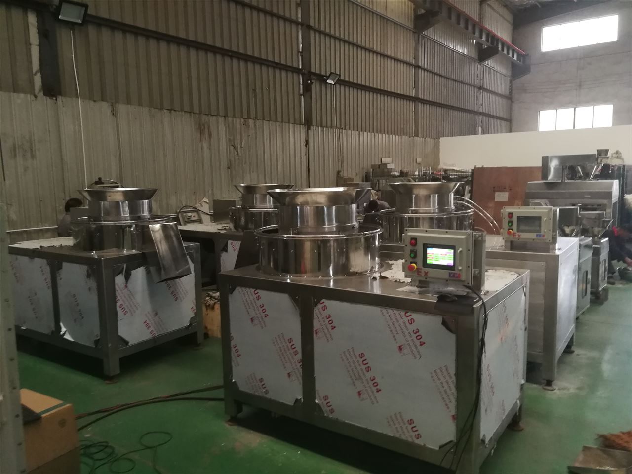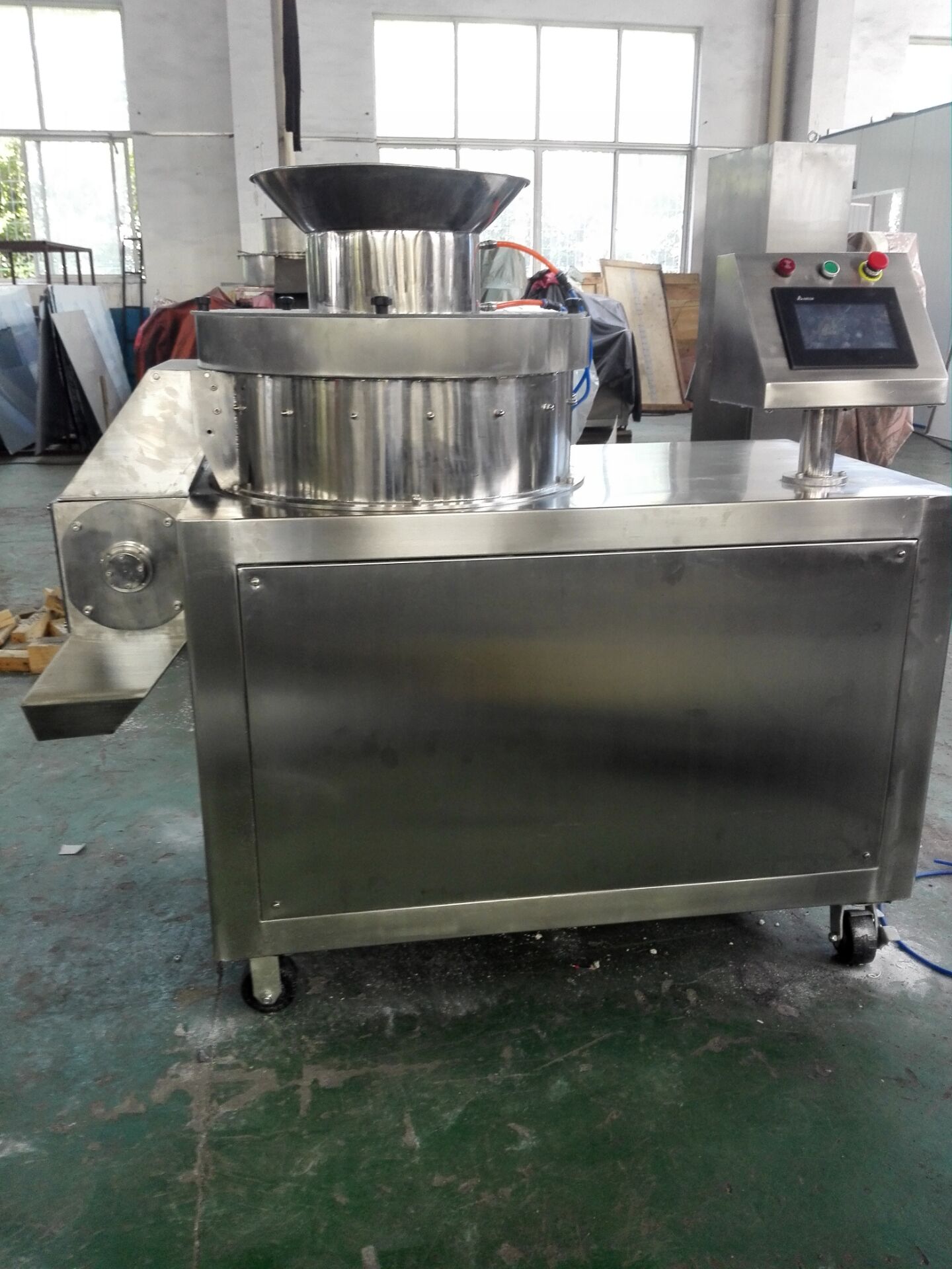 ZLXZ-C300旋轉製粒设备是用一組相對旋轉碾刀,通過不鏽鋼篩網,把物料擠出块状的設備。本设备可與輸送设备和幹燥設備組成自動生產流水線,節省人力成本。