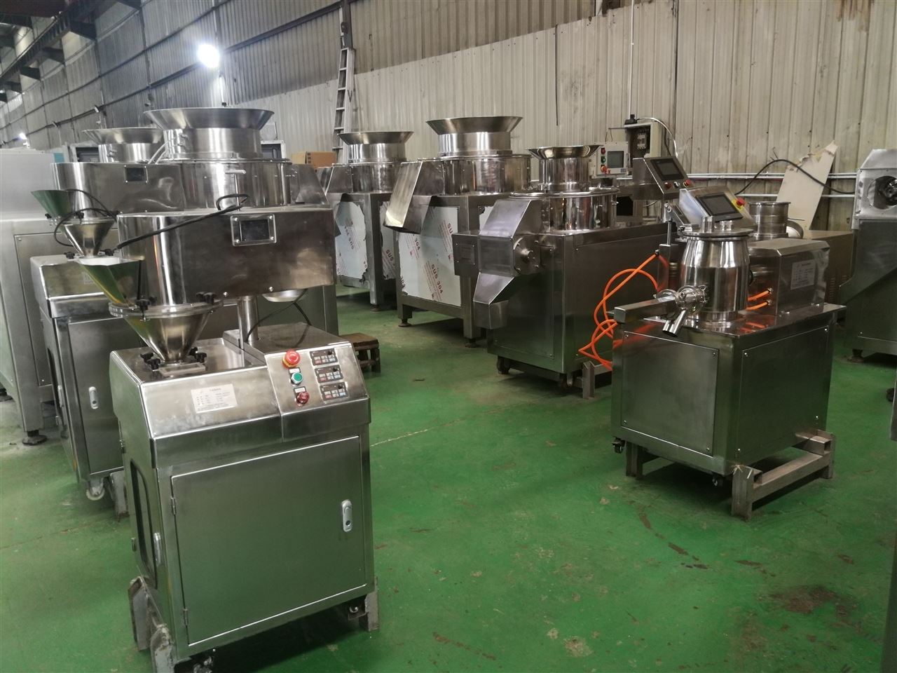 GLZ-25型幹法製粒设备是我司自行研製的試驗用幹法製粒设备,該设备是供户外研發用的zui小型的幹法製粒设备,適用於户外、中間實驗裝置和小型生產,隻需80克左右幹粉末就可以其成型性。根據设备械擠壓造粒工藝原理,將配置好的,具有一定結晶水的幹粉狀或微細晶體狀原料,擠壓成薄片,隨後經造粒係統,通過篩網製成所需大小的块状。
